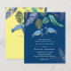 As tartarugas azuis, turquesas e amarelas do mar com folhas tropicais aparecem neste oceano, item de casamento da praia. Os campos de modelo de texto de ambos os lados garantem que você possa adicionar todos os seus detalhes adicionais, incluindo rsvp, registro de presentes, detalhes de recepção, instruções e muito mais.