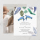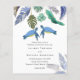 As tartarugas azuis, turquesas e amarelas do mar com folhas tropicais aparecem neste oceano, item de casamento da praia. Os campos de modelo de texto de ambos os lados garantem que você possa adicionar todos os seus detalhes adicionais, incluindo rsvp, registro de presentes, detalhes de recepção, instruções e muito mais.