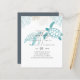 As tartarugas, tartarugas e tartarugas do mar azuis e folhas tropicais aparecem neste convite de casamento temido pela vida do oceano moderno ou salvam o item da data. Os campos de modelo de texto de ambos os lados garantem que você possa adicionar todos os seus detalhes adicionais, incluindo rsvp, registro de presentes, detalhes de recepção, instruções e muito mais.