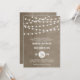 Design de convite de casamento moderno de verão com simples e elegantes luzes de cordas brilhantes penduradas no topo e uma mistura clássica de fontes modernas e caligráficas em um fundo de textura de cor-de-água falso impresso. Um design de pré-disquete simples e na moda, perfeito para o verão! Clique no botão PERSONALIZAR TI para personalizar fontes, mover texto e criar seu próprio design de convite exclusivo.