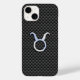 Um símbolo taurus Zodiac num fundo de design de fibra de carbono. Um design moderno urbano para uma ideia personalizada de presente de excelente.