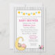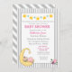 Amo-te ao convite para a Chá da Moon Baby Girl tem uma menina dormindo em lua crescente com uma estrela. Adicione os detalhes da sua festa.