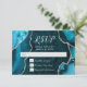 Complete your event stationery with this elegant RSVP card featuring a teal blue agate marble design accented with luxurious silver details. The bold geode-inspired background creates a dramatic and sophisticated look, perfect for weddings, birthdays, formal celebrations, or glamorous evening events. Designed with clear response sections, this RSVP card allows guests to easily confirm attendance, indicate number attending, and respond with acceptance or regrets. The clean, modern typography keeps details easy to read while complementing the rich agate texture. Easily personalize all text to suit your event and coordinate beautifully with matching stationery.