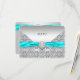 Elegante arco de fita de cetim azul-teal com centro de diamante sobreposto a uma renda prateada com resposta para RSVP. Este lindo RSVP azul-teal é facilmente personalizado para o seu evento com os seus detalhes no estilo de letra, cor e texto da sua escolha. Este é um design impresso sem jóias reais, laços, brilho, etc.