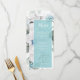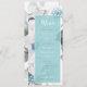 Cartões "Menu" de casamento, com amoras e flores em tons de azul lacrimogêneo e esbranquiçado. Use a modelo fornecida para personalizar seu menu de casamento no belo rótulo semitransparente que pode ser colocado fora do centro para uma aparência na moda moderna. Procure ID476 para ver outros produtos com este design, incluindo placas RSVP correspondentes e muito mais.