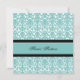 Personalizar 16º Convites de aniversário em elegante cor damasco floral azul turquesa, preto e branco clássico. Adicione o seu nome e detalhes da festa para um convite de aniversário 16 exclusivo e na moda doce.