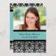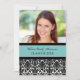 Festa de formatura de cartão com fotos personalizada em azul-turquesa claro elegante e sofisticado, azul-preto e branco, cor damasco floral moderna. Personalize este cartão com fotos de formando adicionando o ano de sua graduação, sua própria foto e seus detalhes de festa de formatura.