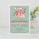 Retro convite ao estilo Vintage para uma cesta de festa de aniversário 80! Prepare-se para se mover sob a bola de disco, com um esplaxo de tons de rosa claro e um guião de groovy "1945" em um fundo verde teal de tons tonados.