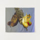 Esta tapeçaria mostra uma fotografia de um pato macho de asa verde um pato magra com pedaços de verde-oliva na cabeça e um talo azulado em sua asa.