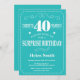 aniversário de 40 anos Surpresa: Teal e Tipografia Branca. Fundo Teal. Aniversário Adulto. Homens ou Mulheres Aniversário. Meninos Meninos ou Meninas Meninas Meninas Adolescentes Convidam. 13 15 16º 18º 20 21rua 30 40º 50º 60º 80 de 70 100º. Qualquer Idade.