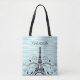 Carregar os seus itens do dia a dia com um Saco de Tote Teal Eiffel Tower Flourish. O design de Tote bag apresenta um fundo ondulado vibrante com a Torre Eiffel adornada com floresces elegantes e espaço para personalizar com o seu nome. Cores adicionais disponíveis com este design também. Entre em contato comigo diretamente se precisar de assistência para personalização.