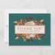 A Queda Teal Terracotta Deixa As Flores Cartões de agradecimentos. Este elegante e rústico cartões de agradecimentos de casamento apresenta cor d'água queimada manualmente laranja e folhas de terracota, creme e beige dahlias, e belos rosas de cor ferrugem perfeitos para um casamento de outono ou outono! A parte traseira da placa de detalhes tem um fundo branco. Este design faz parte da coleção Romance de outono que pode ser visualizada clicando no link de coleta acima.