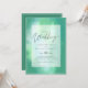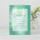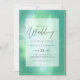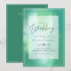 Convite de casamento moderno com campos de modelo de texto em ambos os lados e uma nuvem de cor azul esverdeada.