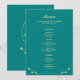 Adicione um toque elegante às suas festividades de casamento com este cardápio de chá e ouro. A frente apresenta os itens de menu. A parte de trás do cardápio tem o nome do casal de casamento e a data do casamento. Rosa de Teal. Use a modelo para personalizar.