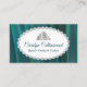 Elegante cartão de visita de carruagem de palitona com aparência de concurso feito em teal, com gráficos de uma área de texto com borda de diamante e uma tiara de prata e diamante. Personalize todo o texto para o seu negócio de concurso.