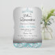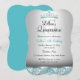 Convite Aniversário de Teal & Silver Quinceañera. Diamante prateado bonito e lacado tiara e design de damasco prateado shimmer. Notem, por favor, que todas as imagens planas não têm joias reais!