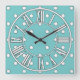 Um tom macio de azul lacrimogêneo, com algarismos romanos e manchas brancas, torna este relógio de parede especial e lindo! Segure-o na biblioteca, no esconderijo, na casa de praia ou no escritório. Este relógio daria um presente exclusivo para o aquecimento doméstico ou para o aquecimento do barco (ou para o aquecimento do barco doméstico). Disponível em dois tamanhos de relógio redondo, ou um relógio quadrado. Copyright Scarebaby Design.