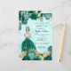 Teal Turquoise Dourada Floral Princess Sweet 16 Convite