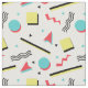 O tecido do divertimento que caracteriza um 90s fabuloso inspirou o teste padrão com círculos, triângulos, quadrados e outras formas vermelho, amarelo corais, na turquesa, e no preto.