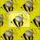 O tecido apresenta os espécimes do gênero Bombus spp. preto-e-amarelo em fundo amarelo.