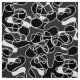 Um padrão sem costura feito de formas irregulares sobrepostas e em camadas e semiopacas delineadas com linhas opacas.