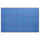 Este design de tecido floral apresenta um fascinante padrão de abstrato geométrico de uma flor azul, marcada por cores de fundo de verde, vermelho e amarelo.