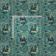 Minha ilustração vetorial original de gatos abstrato, cubos, estrelados, bumerangas, zumbidos, e muito mais, em tons de azul, verde, cinza e preto em choro.