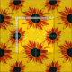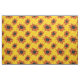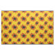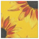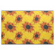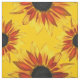 As características deste design florais decorativas brilhante coloridas alaranjado do tecido, amarelo bonitos, o vermelho e os girassóis do ouro largos abrem contra um fundo amarelo dourado. Que grande ideia para jardineiro da flor!