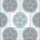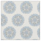 Este tecido tem um círculo laçado do design do abstrato do azul em um impressão de repetição que seja não-direcional. O abstrato assemelha-se a um floco da neve. Luz - azul com acentos cinzentos azulados.