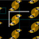 Um abstrato de arte divertido dos olhos de uma coruja no escuro com sua cabeça torcida lateralmente.