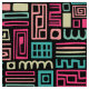 Um padrão de abstrato detalhado e atraente, formado por vários quadrados desenhados à mão, retângulos, espirais e ziguezags inspirados pela arte abstrato do século médio.