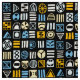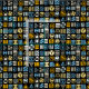 Um padrão contínuo formado por formas e símbolos geométricos desenhados manualmente e decorativos, em uma palete de cinco cores harmoniosas.