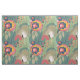 Um padrão floral abstrato verde-arrojado em tons de verde, azul, ouro e vermelho.