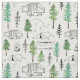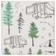 Pinheiros da aguarela e campista, barraca, canoa, lua, fogueira, e estrelas tirados mão! Para o entusiasta exterior que ama acampar, caminhar, pescar, e estar na natureza.