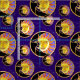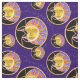 O TECIDO do eclipse solar da aguarela com Sun brilhante dourado & a lua cintilante com estrelas da dança rodaram sobre o fundo roxo escuro. Este teste padrão foi projetado para uma competição internacional do teste padrão do eclipse aonde colocasse nos 25 superiores das centenas de entradas.