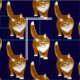O design original das belas artes de um gengibre bonito ou de um gato de gato malhado alaranjado contra um fundo azul da meia-noite pelo artista e pelo desenhista animais Carolyn McFann do estúdio de ronrom de dois gatos imprimiu no tecido de algodão de alta qualidade para fãs do gatinho.