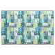 Turquesa, azul-lacrimejo, azul-marinho, verde limão e via aquática. Nossa manta tropical é uma combinação dos nossos impressões aloha mais vendidos. Esta design é uma maneira perfeita de adicionar um toque de aloha à sua decoração. Palm Whisperer, Malia Hibiscus, Jardim da Meia-Noite, Surf Pareau, Momona Pineapple, Makapuu Beach e algumas xadrezes tropicais criam uma manta de retalhos utilizando uma história de cores coordenada. Excelente para aquela casa de praia, quarto de dormitório ou sua sala tiki!