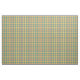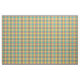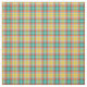 Tecido com uma xadrez verde brilhante amarela, alaranjada, e do seafoam, com acentos azuis e brancos. Um teste padrão original de Plaidwerx na indústria da moda que tende cores.