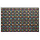 Este tecido tem um padrão para se parecer com uma colcha de Amish com um impressão de bloqueio Ohio Star em vermelho, roxo, azul, amarelo, ouro, laranja e verde contra um fundo preto.