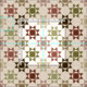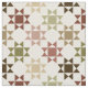 Este tecido é padronizado para se parecer com uma colcha de Amish com um impressão de colcha em Ohio Star em tons de marrom, bronzeado, verde-sábio, marrom e mauve contra um fundo colorido de creme.