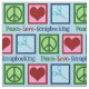 Amor Scrapbooking da paz. Um presente bonito do scrapbooker com um sinal de paz bonito, um coração, e um par de tesouras bonito perfeitas para projetar e crafting um álbum de recortes das fotos e das memórias.