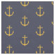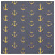Tecido âncora dourado e azul marinho para seus projetos de costura e artesanato. Tecido clássico com estampa de âncora dourada náutica em azul marinho. A ferramenta de design permite a personalização total deste padrão. Você pode deixar a âncora menor ou maior, girá-la ou alinhá-la de forma diferente. Você também pode escolher entre vários tipos de tecido.