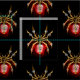 Aranha mecânica, com pá-pá de ouro, engrenagens de latão e uma lâmpada de vidro vermelha sobre fundo preto. Estilo Steampunk.