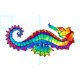 Articulação artificial, brilhante, arco-íris, cavalo de mar poligonal sobre fundo branco. Tatuagem brilhante.