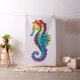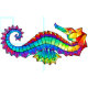 Articulação artificial, brilhante, arco-íris, cavalo de mar poligonal sobre fundo branco. Tatuagem brilhante.