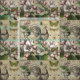 Um belo galo, flores e colagem de borboletas é baseado em papéis efêmeros da era vitoriana, colocados juntos em um na moda que é macio e atraente.