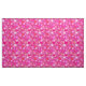 Tecido em um padrão geométrico representativo de rodas ou engrenagens pontiagudas, em tons de rosa, de rosa-gelo pálido a fúcsia profunda - um pouco Steampunk, um pouco moderno do século do Médio