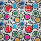 Bolinhas de picles multicoloridas e círculos pretos em fundo branco. Excelente como decoração de quarto ou vestuário de picleball