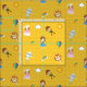 Padrões incluem Dorothy, Toto, Tin Man, Scarecrow, Cowardly Lion, Glinda a Bruxa Boa, arco-íris, nuvem, sol, balão e guarda-chuva sobre fundo de tijolos amarelos.