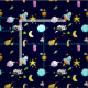 A lua, as estrelas, o foguete, os planetas e o padrão dos astronautas para os rapazes.